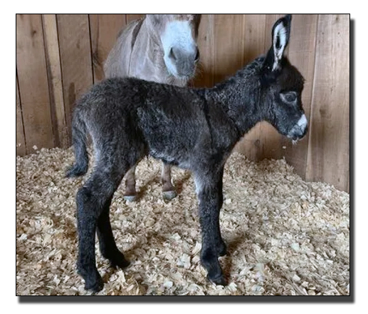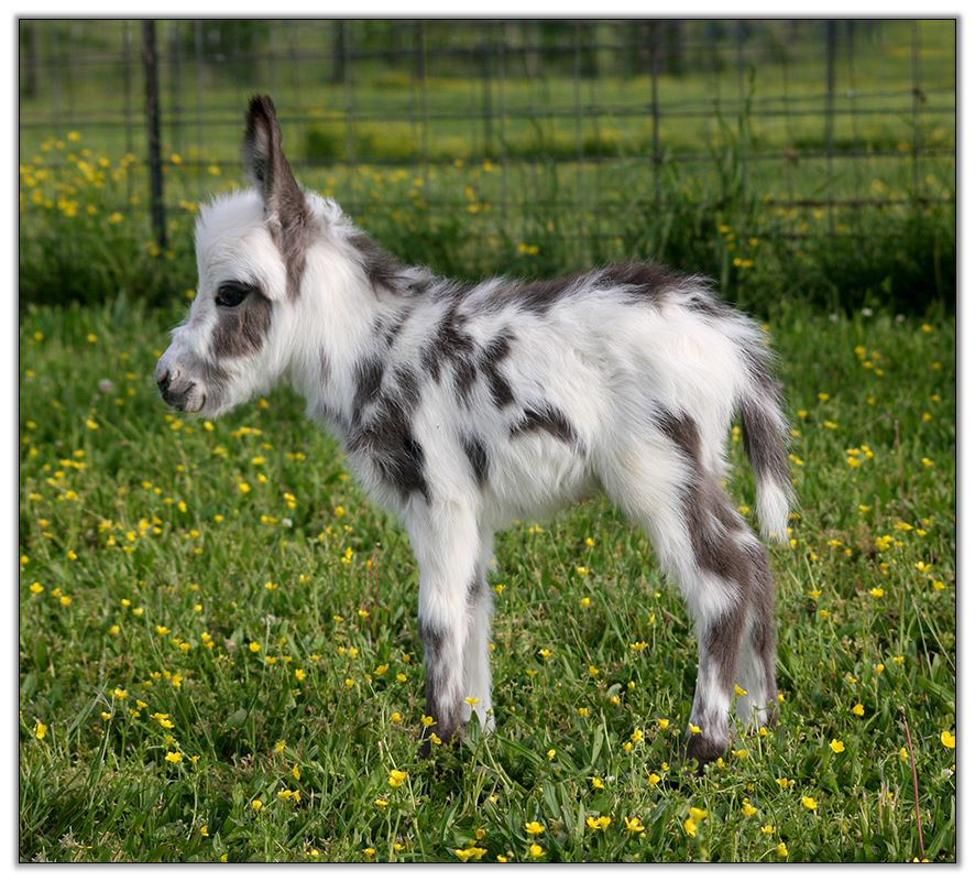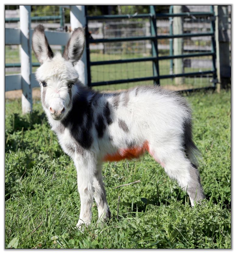 5) SAMD Zizzy Stardust, Dark Gray/White Spotted Jack born at Southern Asspitality Miniature Donkeys.SAMD Ziggy Stardust